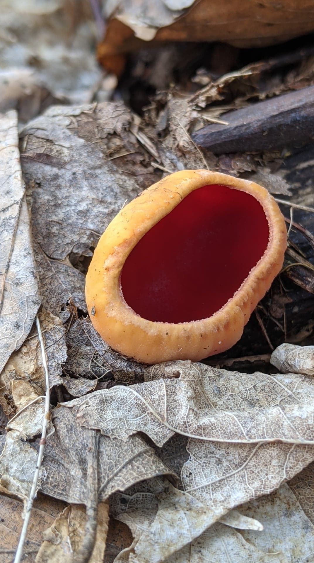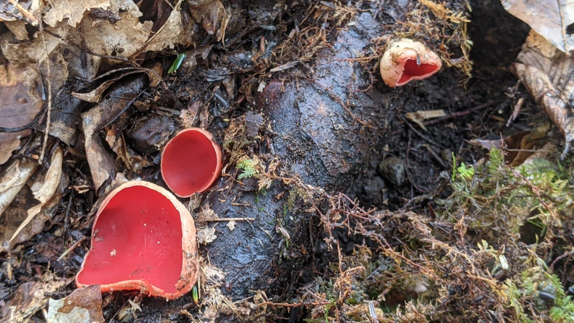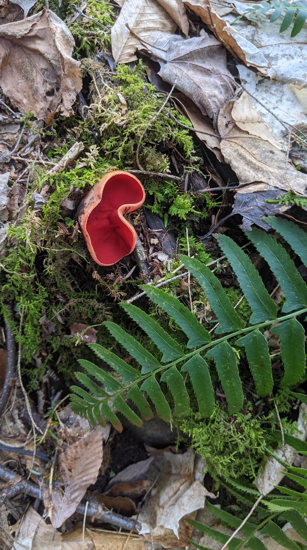 The scarlet elf cap is found all over the world from Canada to Australia to Africa. It is found on decaying sticks and branches in damp areas. Often slightly buried under the leaf litter or tucked into some moss.